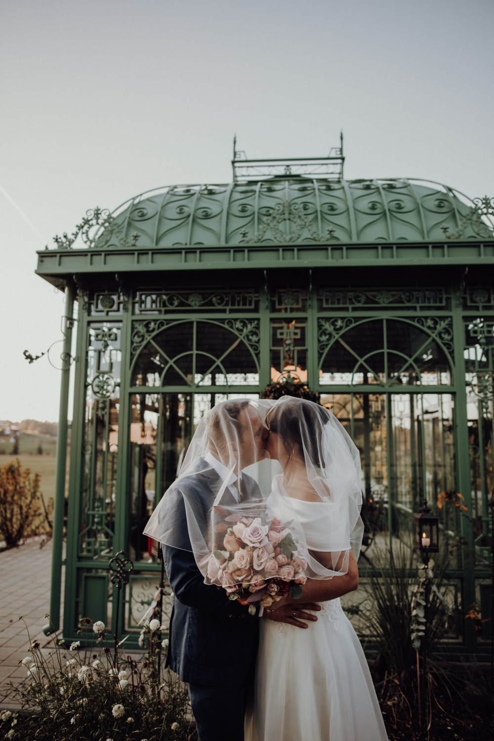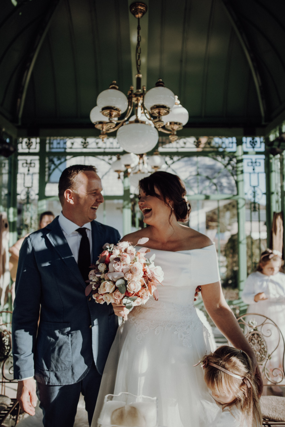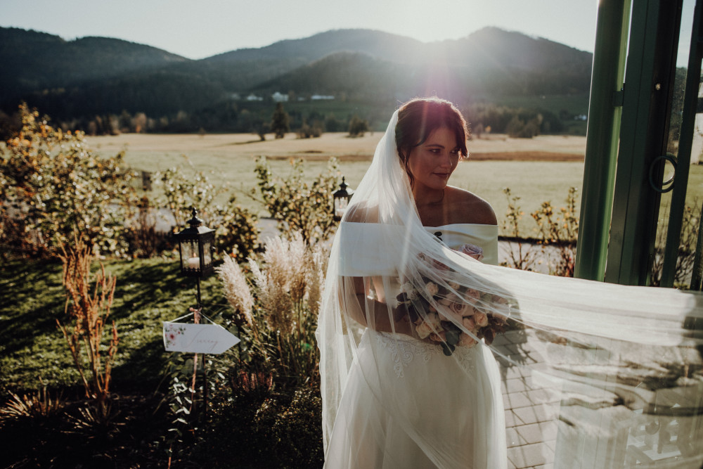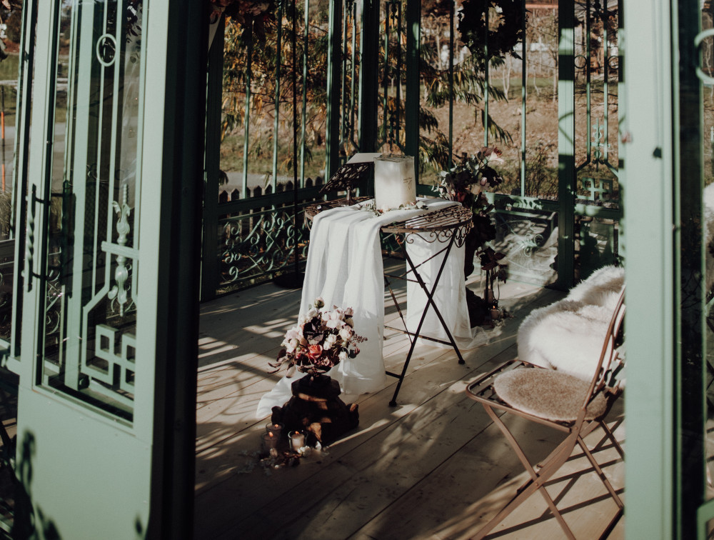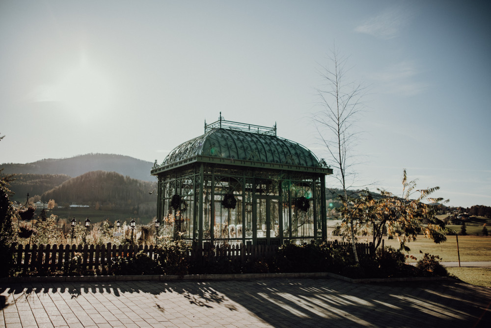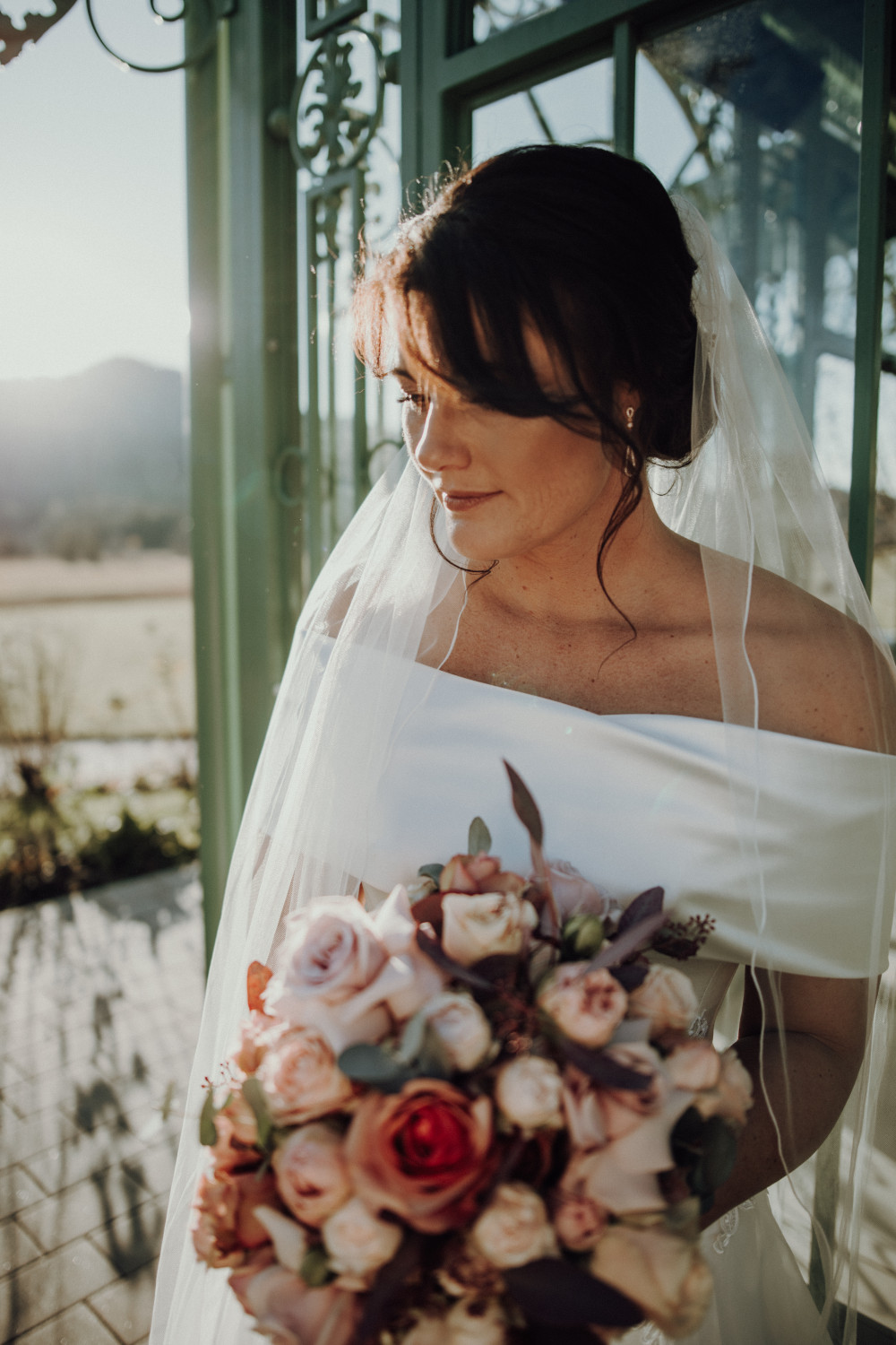 Über englische Rosen, Sommerbrautkleid und Sonnenstrahlendurchflutete Glashaustüren